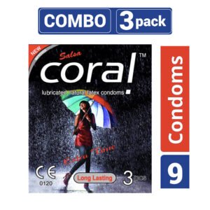 Coral – Long Lasting Lubricated Natural Latex Condom – Combo Pack – 3 Packs – 3×3 – 9pcs