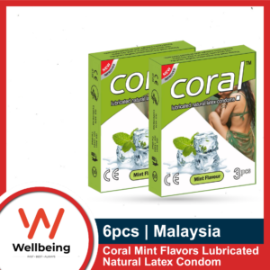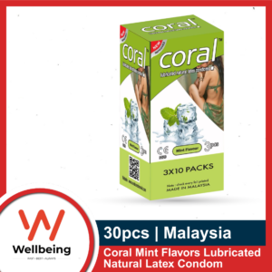 Coral Mint Flavors Lubricated Natural Latex Condom | Full Box – 30pcs | Malaysia