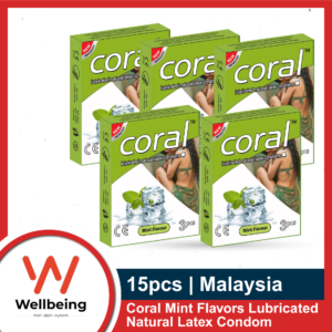 Coral Mint Flavors Lubricated Natural Latex Condom | Half Box 5×3=15pcs | Malaysia