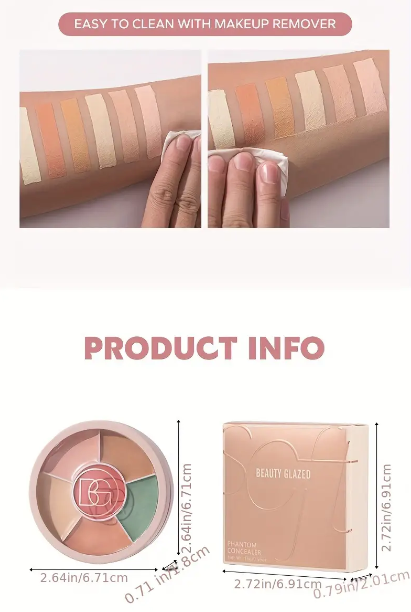 The color concealer palette is smooth and creamy, Easy to push out, make the makeup feels light and natural. Soft focus concealer, conceals pores, dost not snaglt is easy to say goodbye to many kinds of uneven skin tone with free color adjustment. It’s easy to use!