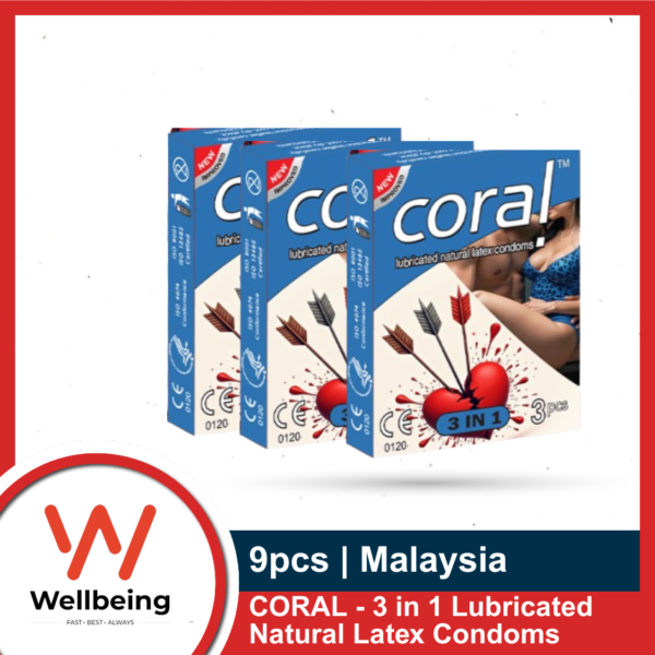 Be the first to review “Coral – 3 in 1 Lubricated Natural Latex Condom – Combo Pack – 3 Packs – 9pcs”Cancel Reply