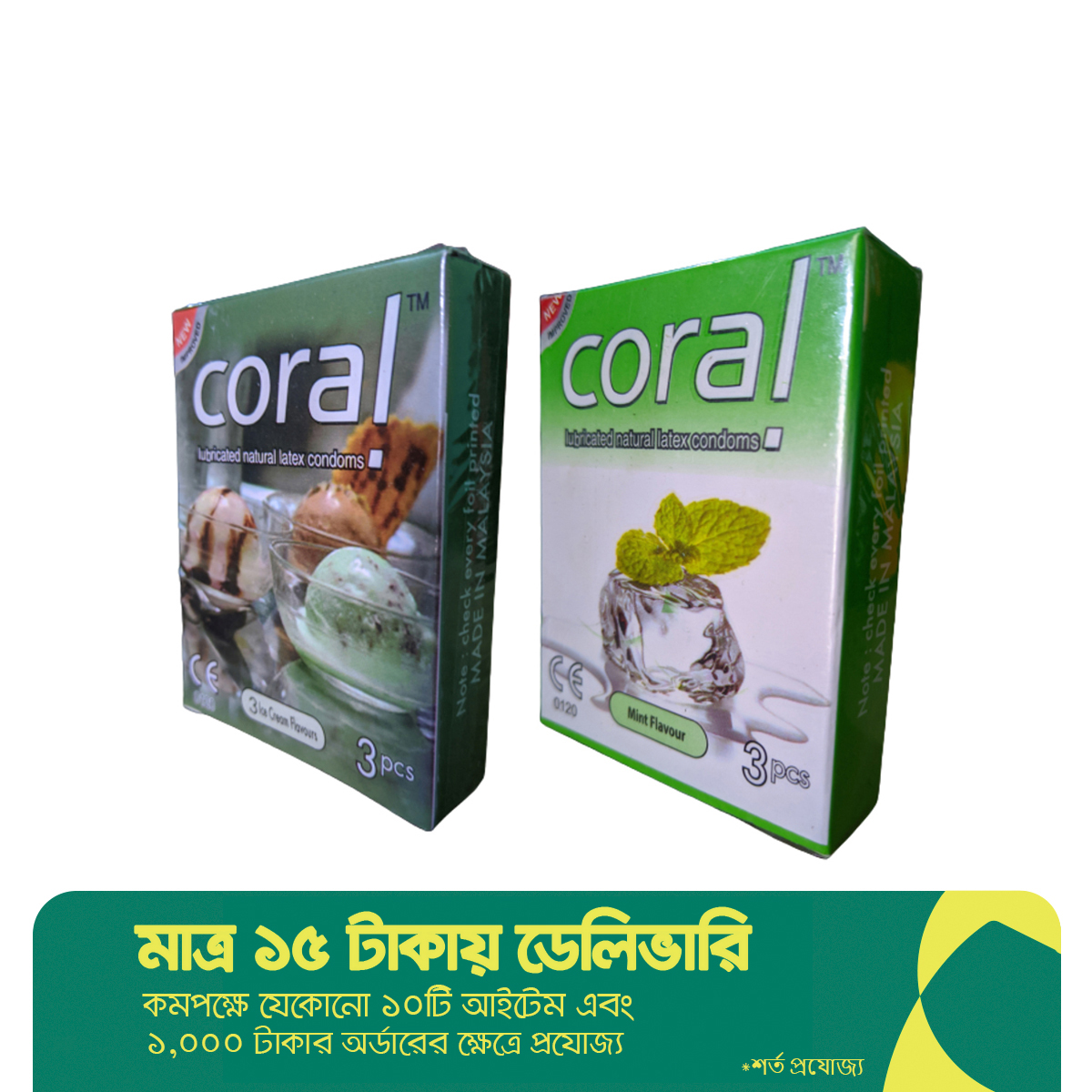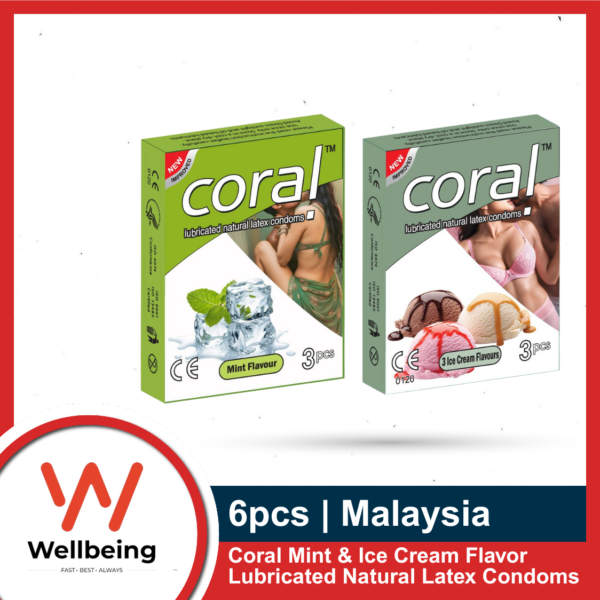 - Coral Mix – 1 Pack Mint & 1 Pack 3 Ice Cream Flavored Condom – 3×2=6pcs