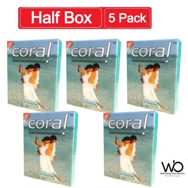 W?ell-Being Distribution Ltd. is the biggest authorized Distributor of Coral Condoms in Bangladesh. Weight 0.1 kg Reviews There are no reviews yet. Be the first to review “Coral Ultra Thin Extra Time Lubricated Natural Latex Condom 5 Cack Combo 3×5 – 15pcs”Cancel ReplyYour email address will not be published. Required fields are marked *Your rating * Rate… Perfect Good Average Not that bad Very poor Name *Email *Your review * Save my name, email, and website in this browser for the next time I comment. Submit
