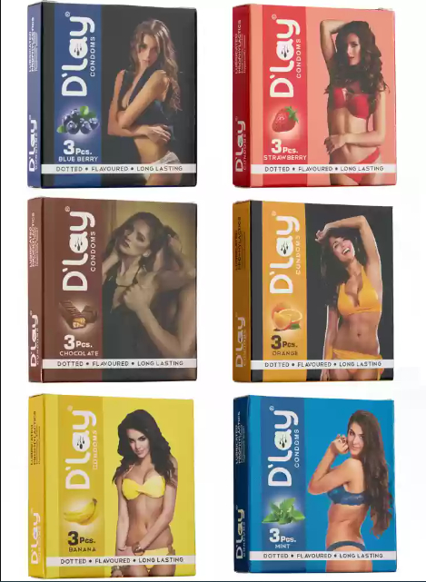 D’lay Condoms for Men 3pcs x 2 Pack Dotted Long Lasting Condom | Chocolate, Strawberry, Banana, Mint, Blueberry, Orange Flavor (Product of INDIA)