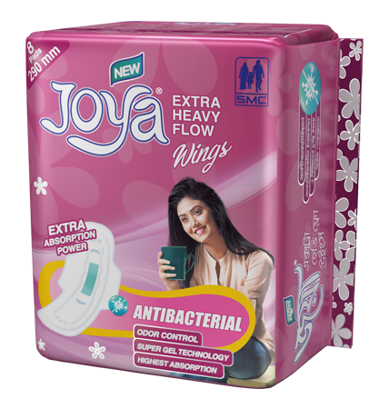 • Joya Extra Heavy Flow is a wings (Panty system) type sanitary napkin that ensures highest absorption of liquid during the heavy flow period.