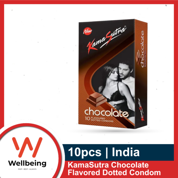 BRAND: KAMASUTRA Chocolate Flavor MADE IN INDIA DOTTED CONDOM Length, 180mm (min), Width, 53 +/-2mm
