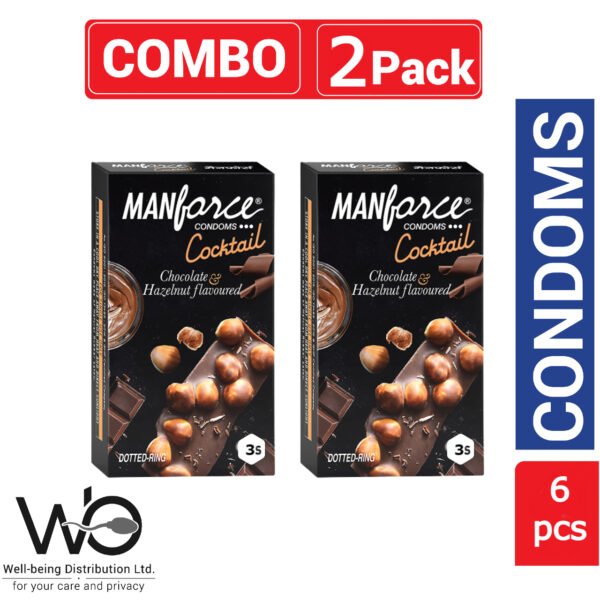 Manforce Cocktail Condom Chocolate & Hazelnut Flavored Condom with Dotted Ring – 2 Combo Pack – 3×2=6pcs Condom
