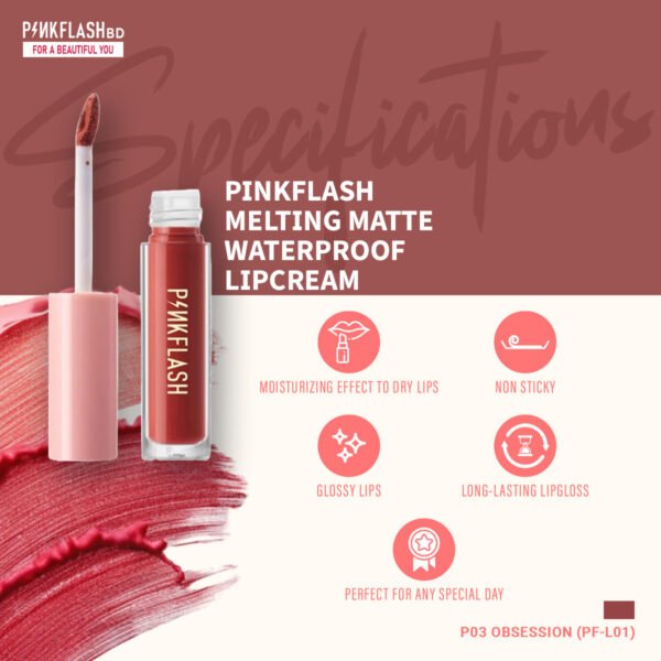 Be the first to review “PINKFLASH L01 – MELTING MATTE WATERPROOF LIPCREAM – P03 Obsession 3.25gm 1pcs”Cancel Reply
